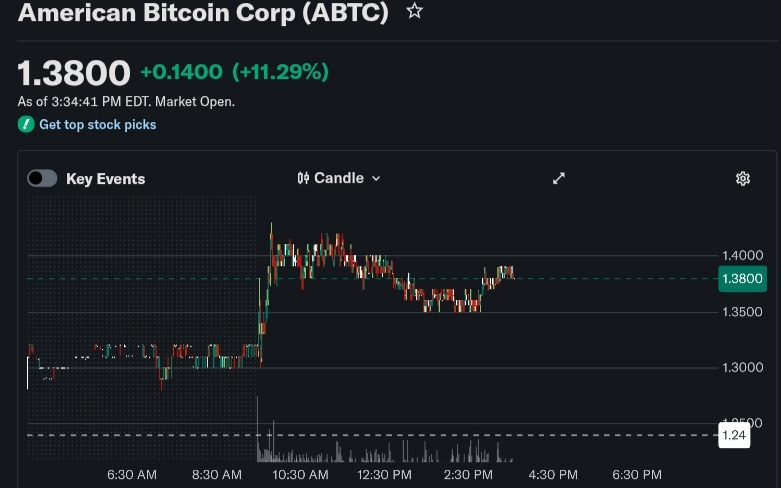 American Bitcoin Corp (NASDAQ:ABTC) stock rose on Wednesday, after the company announced it was expanding its mining capacity. Its stock rose more than 14% today as the Trump-linked company activated more than 11,000 Bitcoin mining machines.